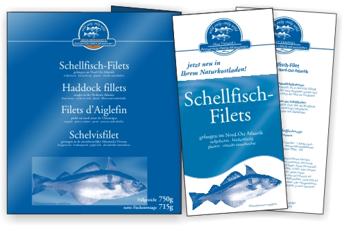 Produkt: Schellfisch Designentwicklung der Verpackung, Produktions-daten, Informationsflyer Vertrieb: