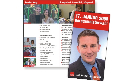 Projekt: Wahlkampf Entwicklung einer Serie zum Wahlkampf eines Bürgermeisterkandidaten, Flyer: Vorstellung des Kandidaten